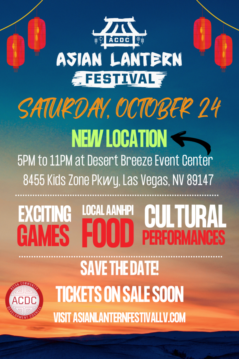 Join us at our new location, the Desert Breeze Event Center, this year for the annual Asian Lantern Festival! This will be another mesmerizing night under the lanterns filled with diverse traditions, tantalizing flavors, Las Vegas vendors, and captivating cultural performances. Our goal is to unite locals, tourists, and lovers of different cuisines to celebrate the AANHPI (Asian American, Native Hawaiian, and Pacific Islander) community. This event was formerly the ACDC Asian Night Market. Tickets will be on sale soon!